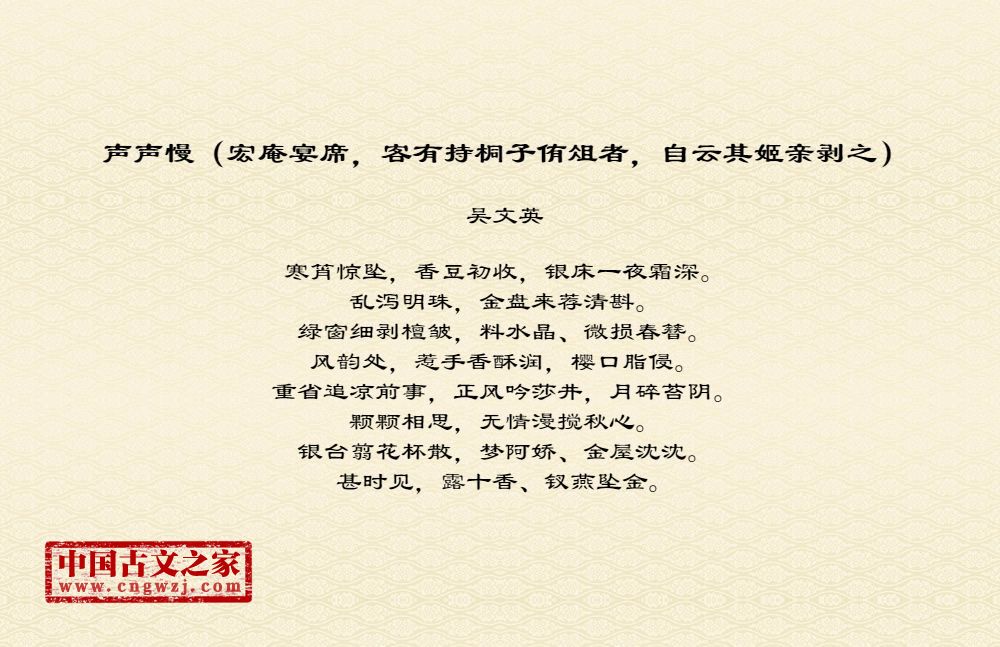 《声声慢(宏庵宴席,客有持桐子侑俎者,自云其姬亲剥之)》的原文打印版(吴文英)