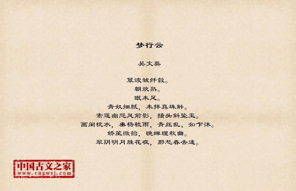吴文英(约1200~1260),字君特,号梦窗,晚年又号觉翁,四明(今浙江宁波)人。原出翁姓,后出嗣吴氏。与贾似道友善。有《梦窗词集》一部,存词三百四