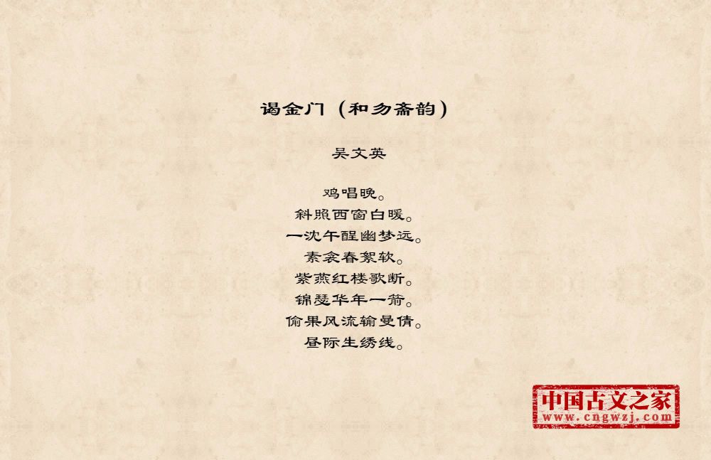 鸡唱晚。斜照西窗白暖。一沈午酲幽梦远。素衾春絮软。紫燕红楼歌断。锦瑟华年一箭。偷果风流输曼倩。昼际生绣线。
