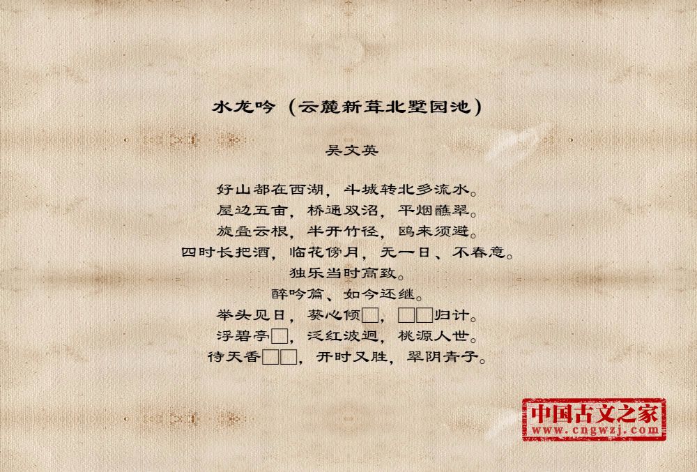 《水龙吟(云麓新葺北墅园池)》由吴文英创作