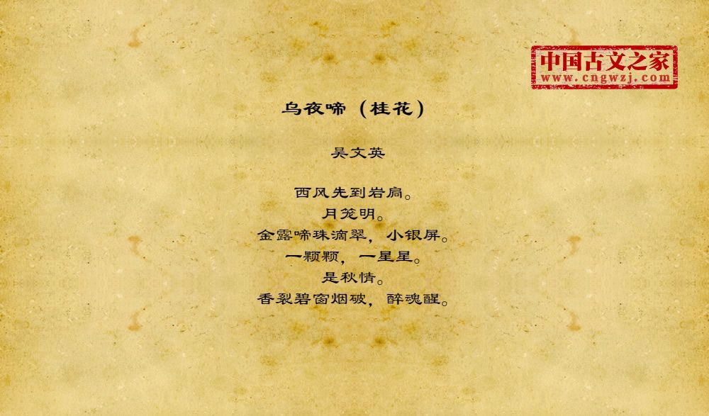 西风先到岩扃。月笼明。金露啼珠滴翠,小银屏。一颗颗,一星星。是秋情。香裂碧窗烟破,醉魂醒。