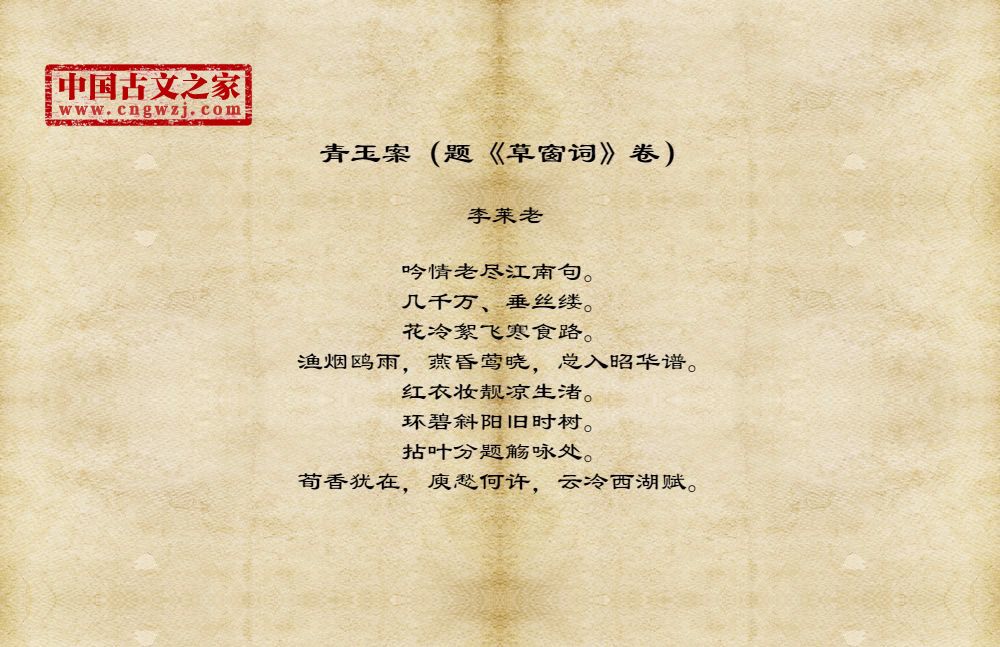 《青玉案(题《草窗词》卷)》的原文打印版(李莱老)