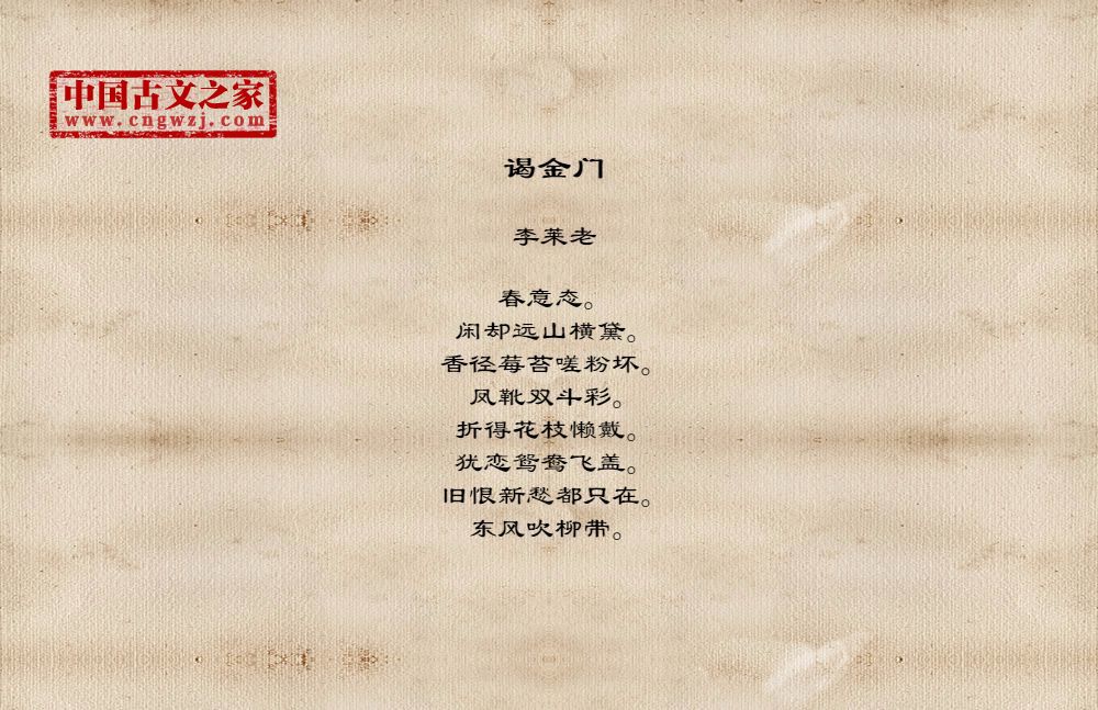 《谒金门》的原文打印版(李莱老)