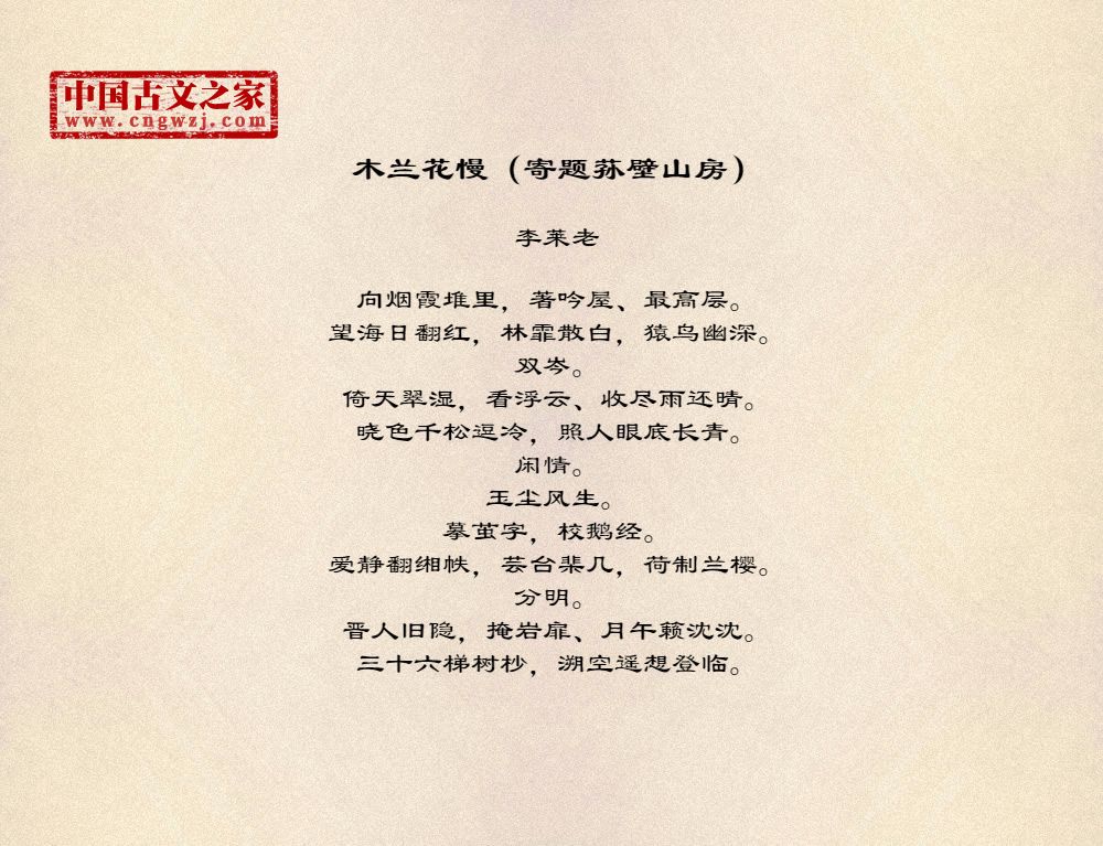 《木兰花慢(寄题荪壁山房)》由李莱老创作