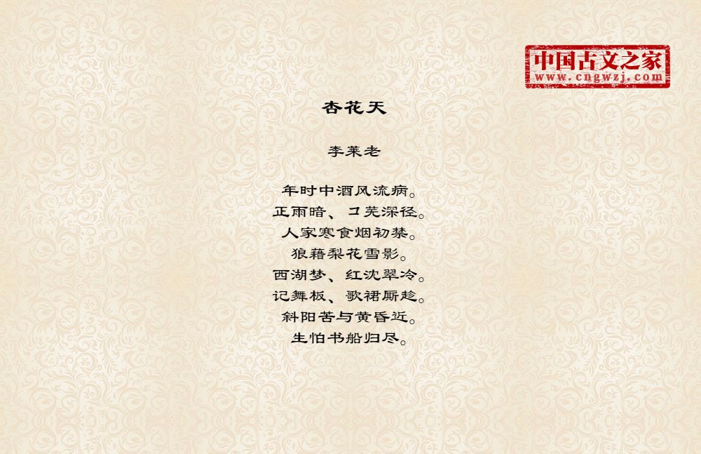《杏花天》的原文打印版(李莱老)
