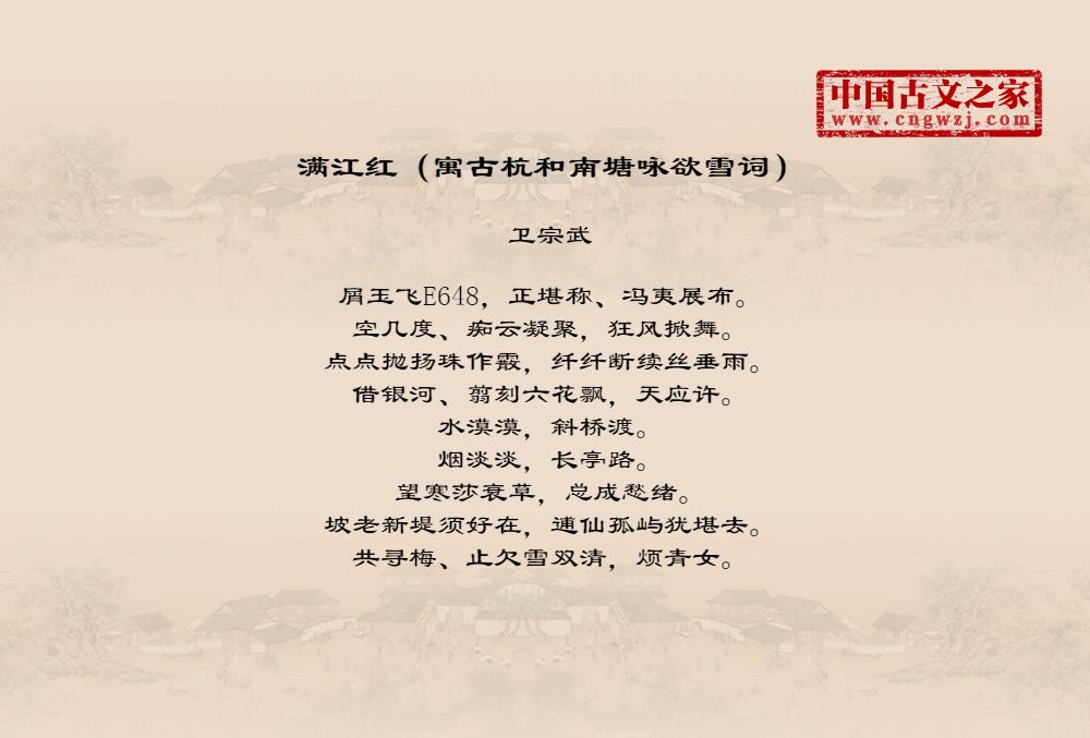 《满江红(寓古杭和南塘咏欲雪词)》的原文打印版(卫宗武)