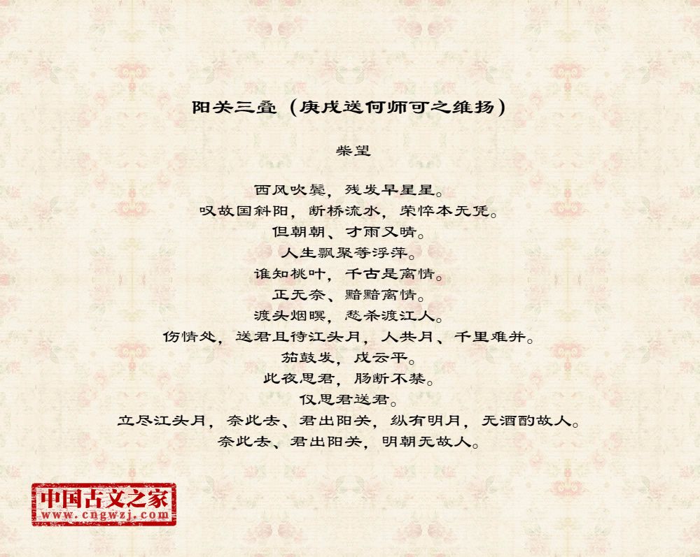 《阳关三叠(庚戌送何师可之维扬)》的原文打印版(柴望)