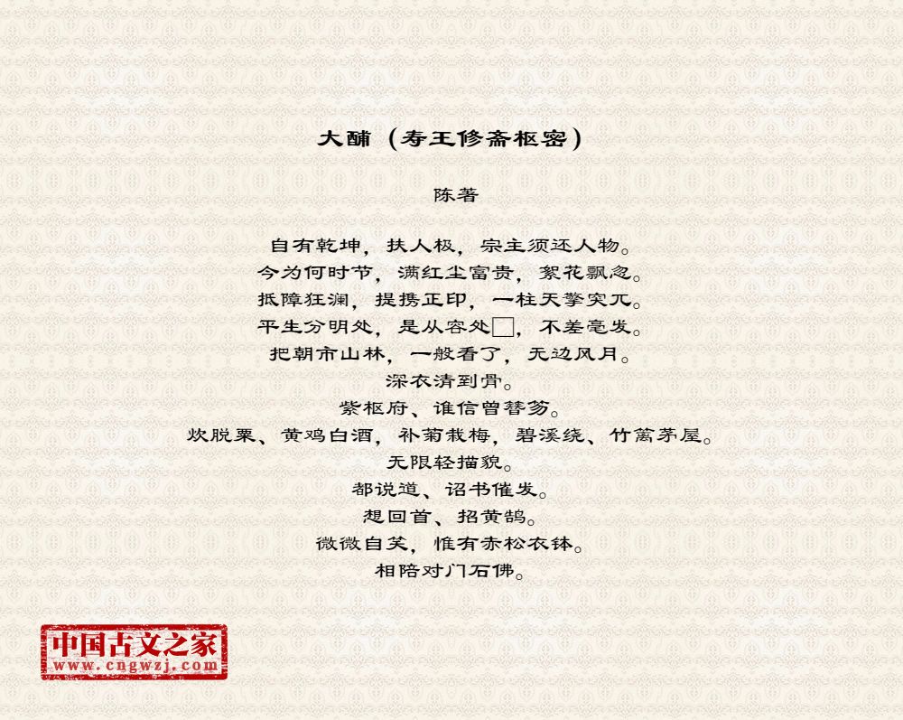 紫枢府、谁信曾簪笏。