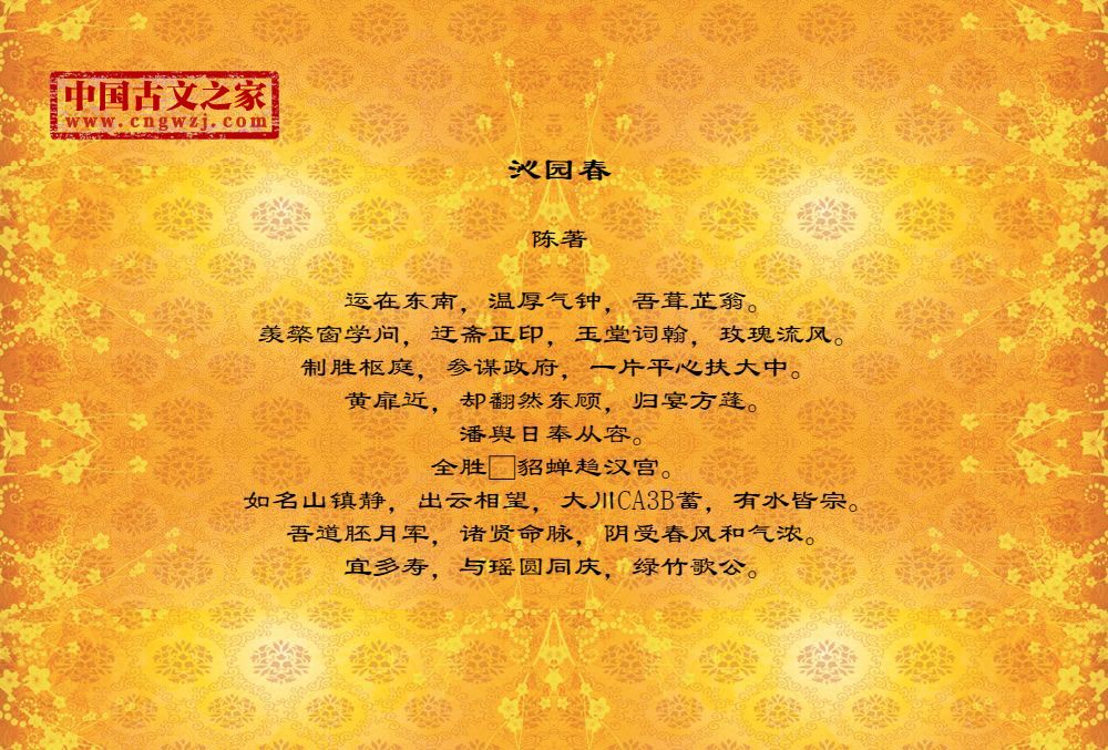 运在东南,温厚气钟,吾葺芷翁。羡檠窗学问,迂斋正印,玉堂词翰,玫瑰流风。制胜枢庭,参谋政府,一片平心扶大中。黄扉近,却翻然东顾,归宴方蓬。潘舆日奉从容。全胜□貂蝉趋汉宫。如名山镇静,出云相望,大川CA3B蓄,有水皆宗。吾道胚月军,诸贤命脉,阴受春风和气浓。宜多寿,与瑶圆同庆,绿竹歌公。