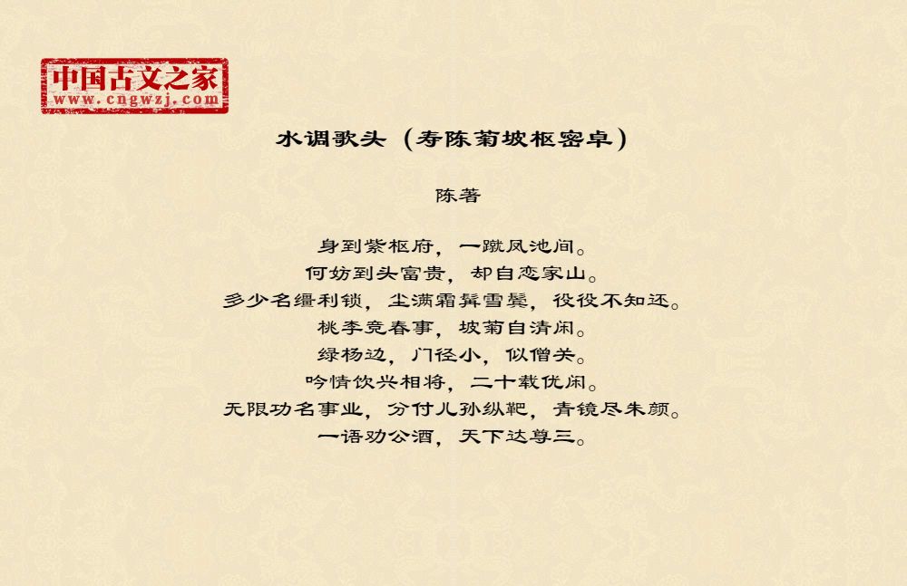 《水调歌头(寿陈菊坡枢密卓)》由陈著创作