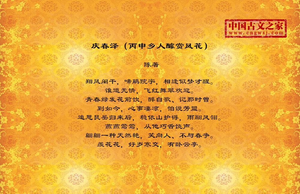 《庆春泽(丙申乡人醵赏凤花)》由陈著创作