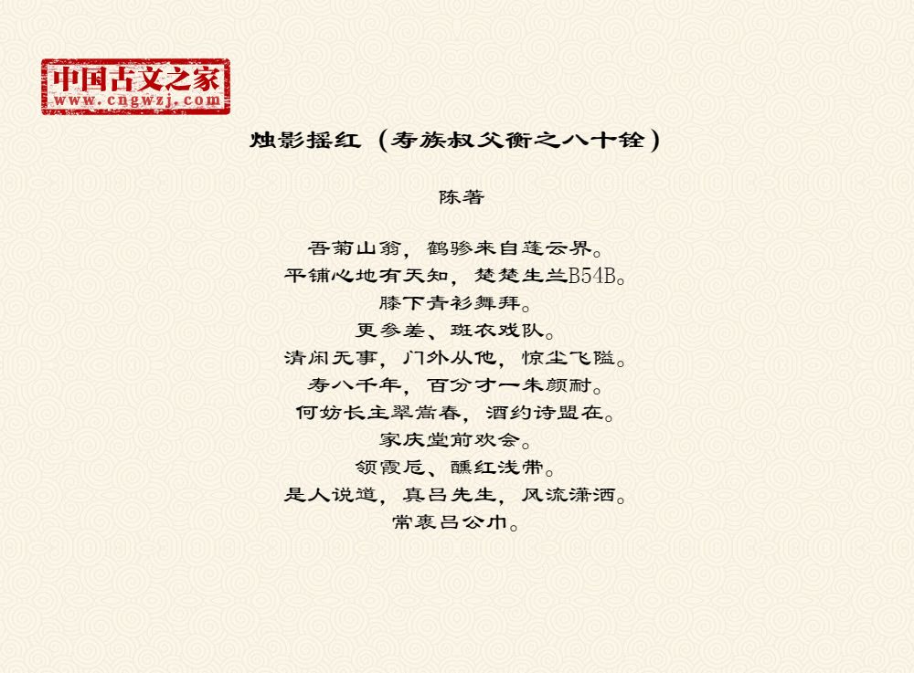 《烛影摇红(寿族叔父衡之八十铨)》的原文打印版(陈著)