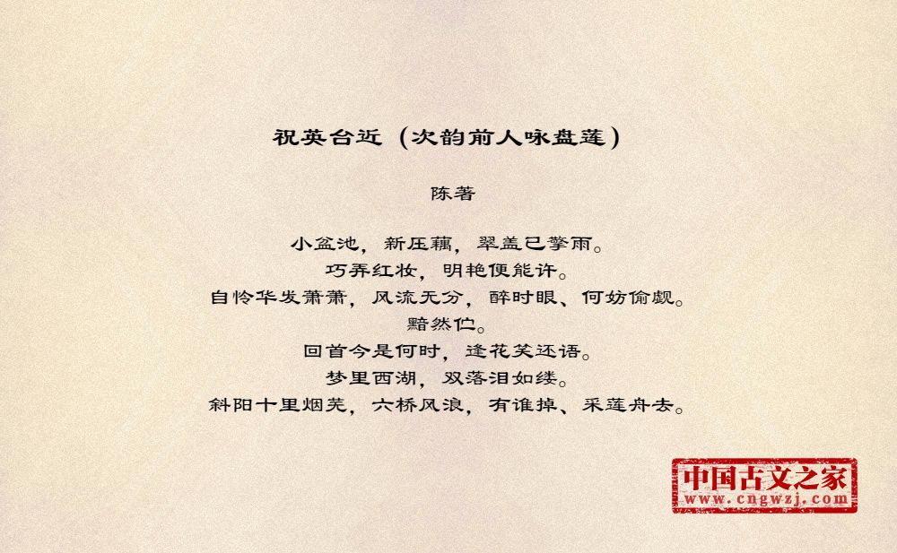 《祝英台近(次韵前人咏盘莲)》的原文打印版(陈著)
