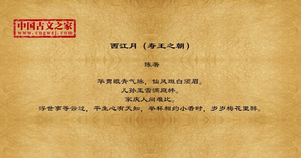 华冑眼青气脉,仙风斑白须眉。儿孙玉雪满庭帏。家庆人间难比。浮世事等云过,平生心有天知,举杯相约小看时,岁岁梅花里醉。