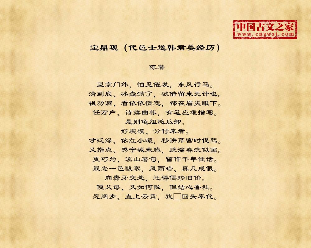 《宝鼎现(代邑士送韩君美经历)》由陈著创作