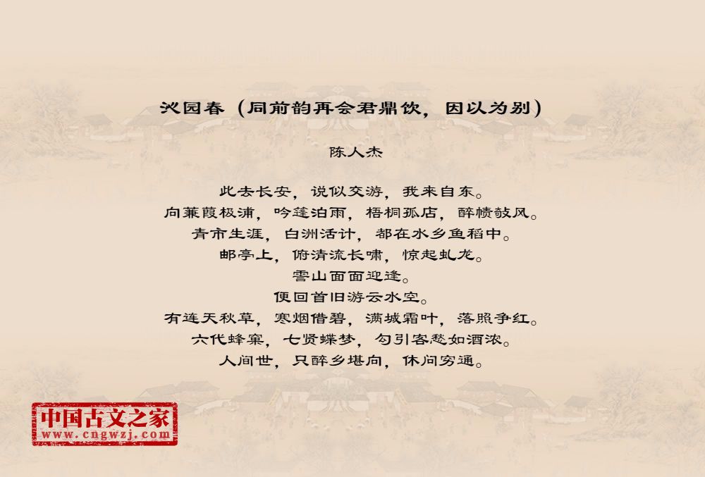 《沁园春(同前韵再会君鼎饮,因以为别)》的原文打印版(陈人杰)
