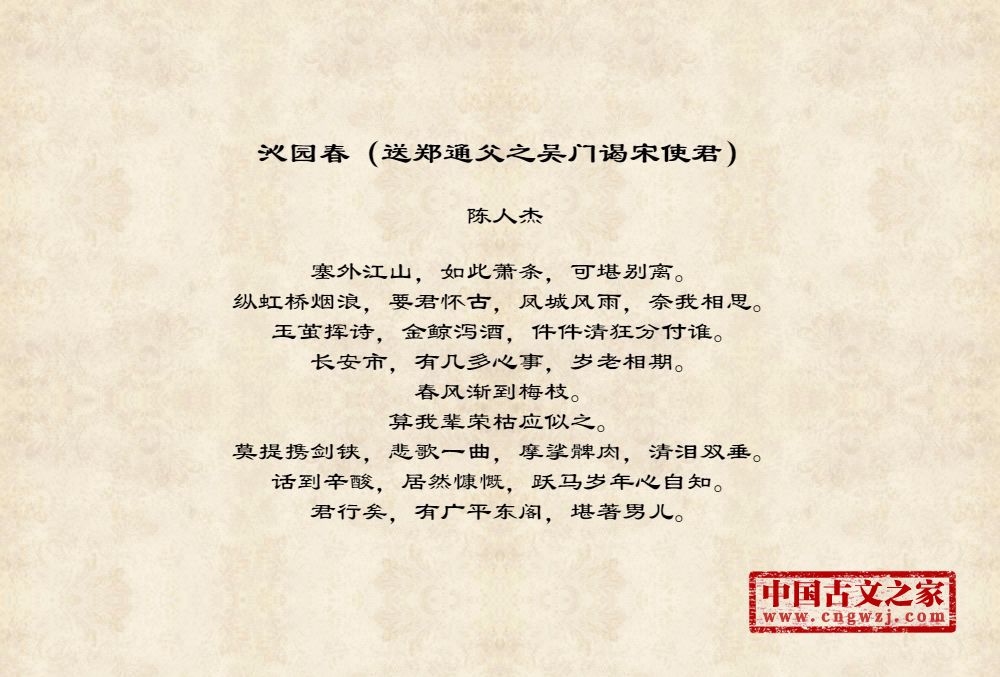 《沁园春(送郑通父之吴门谒宋使君)》的原文打印版(陈人杰)