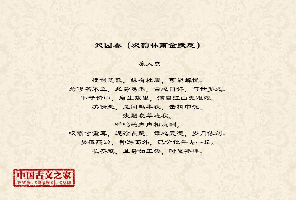《沁园春(次韵林南金赋愁)》的原文打印版(陈人杰)