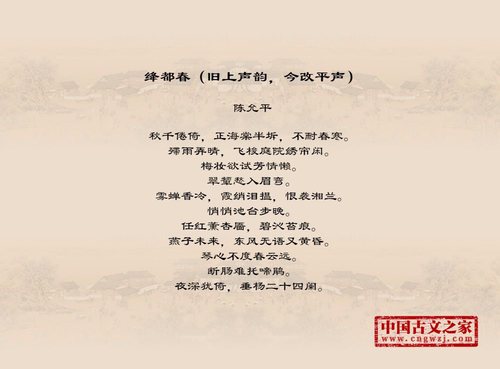 《绛都春(旧上声韵,今改平声)》由陈允平创作