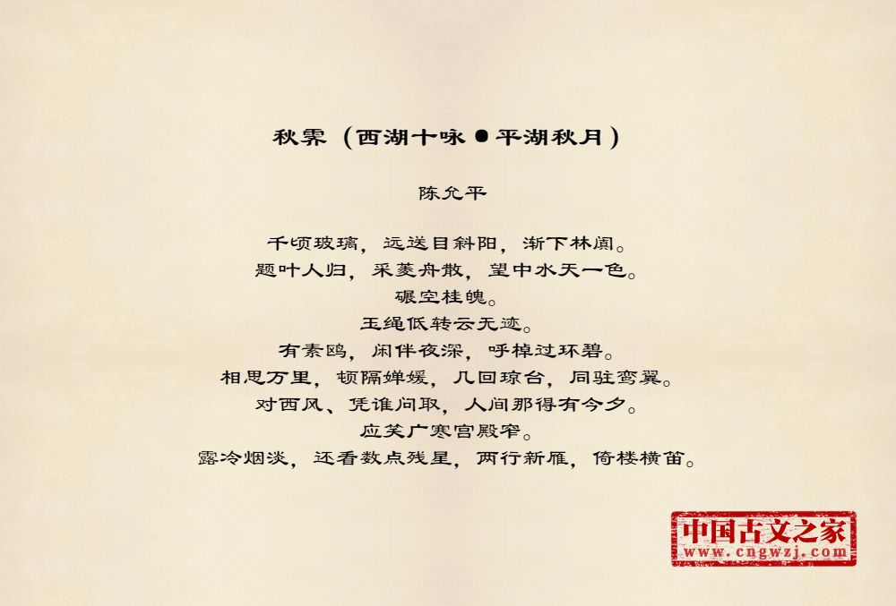 《秋霁(西湖十咏·平湖秋月)》的原文打印版(陈允平)