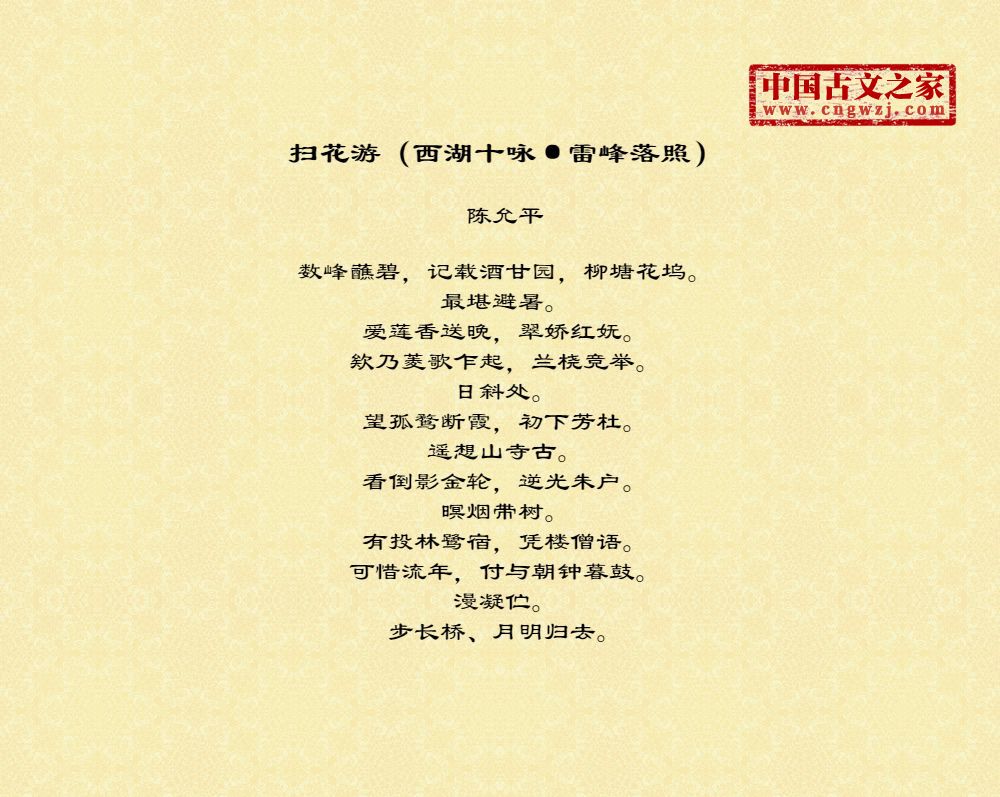 《扫花游(西湖十咏·雷峰落照)》的原文打印版(陈允平)