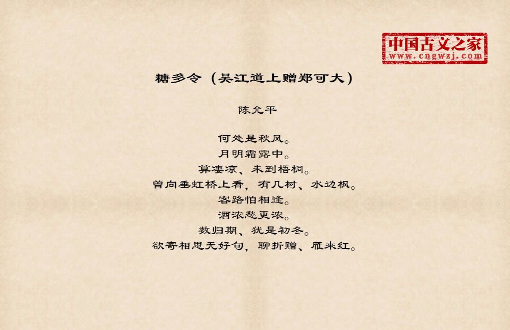 《糖多令(吴江道上赠郑可大)》的原文打印版(陈允平)