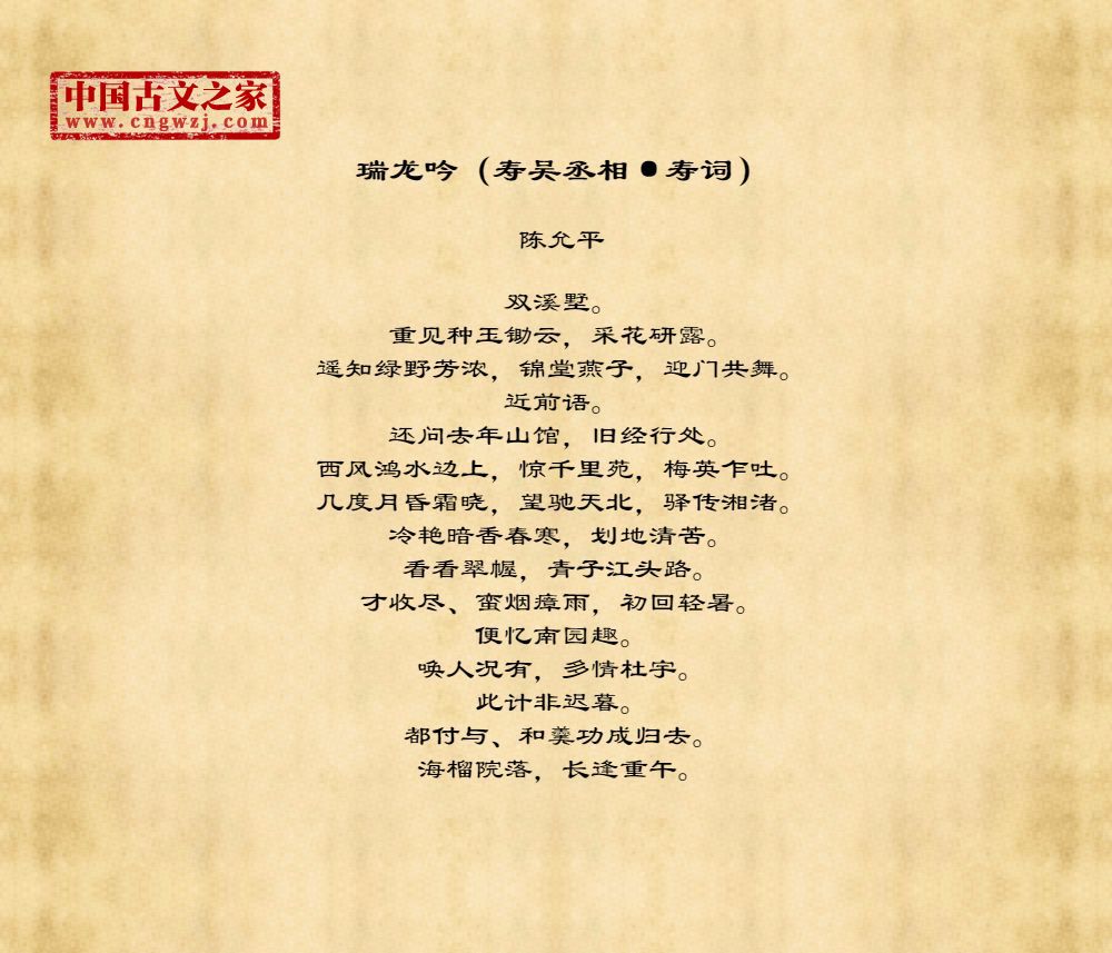 《瑞龙吟(寿吴丞相·寿词)》的原文打印版(陈允平)