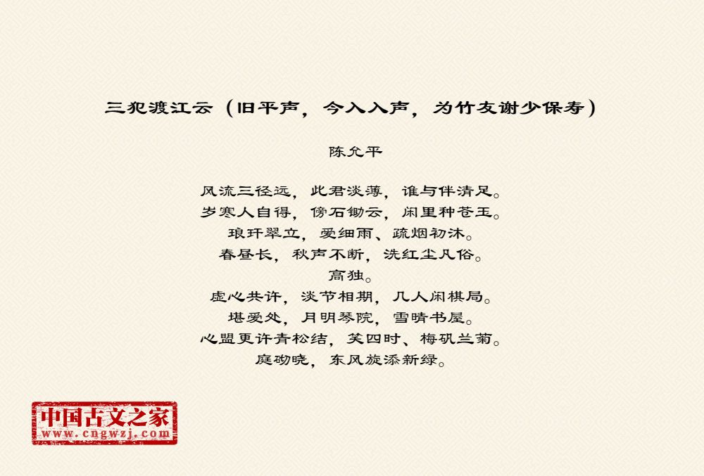 三犯渡江云(旧平声,今入入声,为竹友谢少保寿)图片