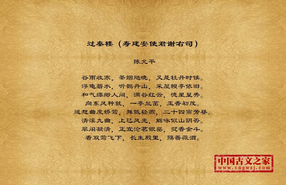 《过秦楼(寿建安使君谢右司)》由陈允平创作