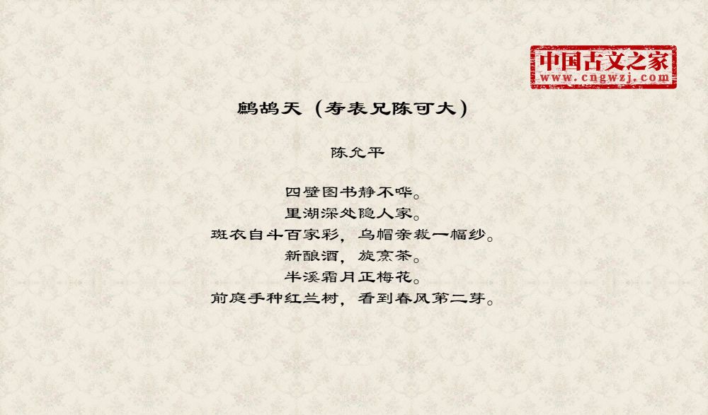 《鹧鸪天(寿表兄陈可大)》的原文打印版(陈允平)