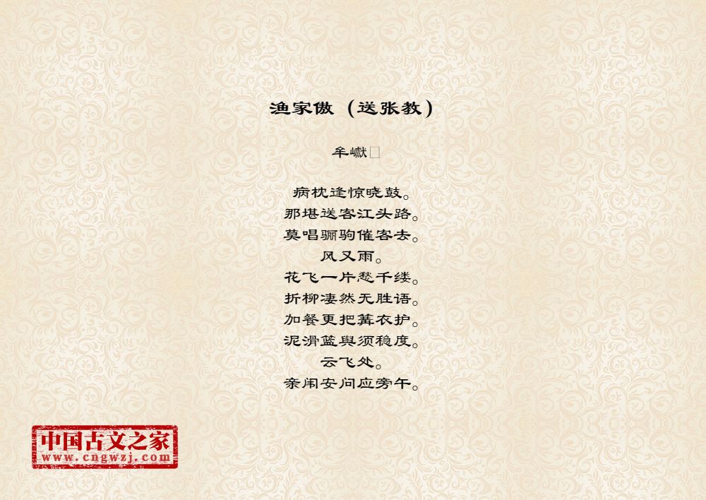 《渔家傲(送张教)》的原文打印版(牟巘)