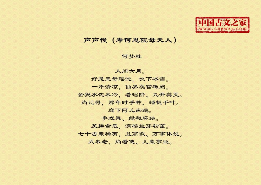 《声声慢(寿何思院母夫人)》由何梦桂创作