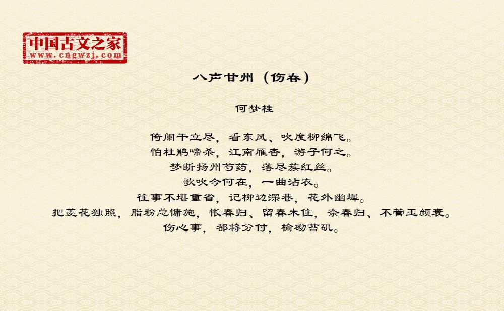 留春不住。又早是清明,杨花飞絮。杜宇声声,黄昏庭院,那更半帘风雨。劝春且休归去...