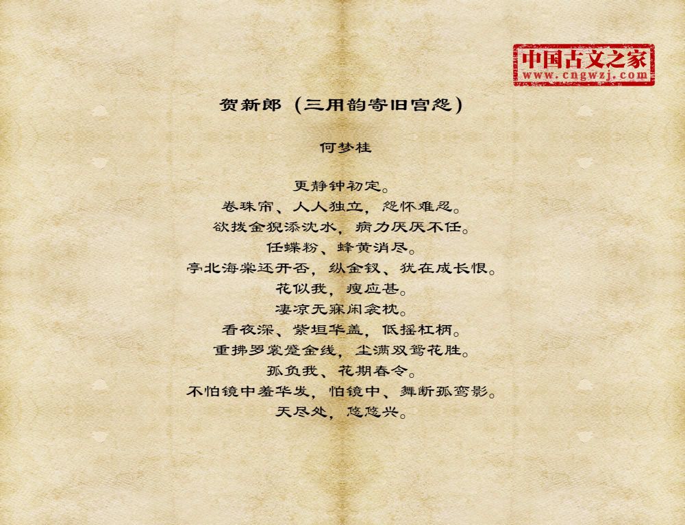 《贺新郎(三用韵寄旧宫怨)》的原文打印版(何梦桂)
