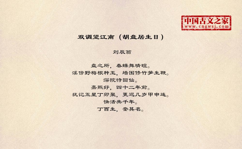 双调望江南(胡盘居生日)