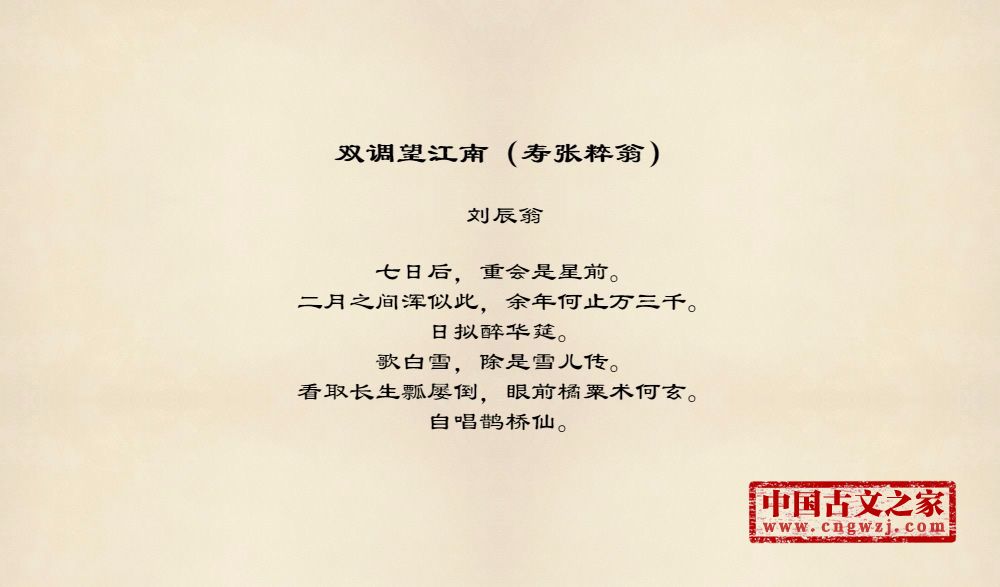 七日后,重会是星前。二月之间浑似此,余年何止万三千。日拟醉华筵。歌白雪,除是雪儿传。看取长生瓢屡倒,眼前橘粟术何玄。自唱鹊桥仙。