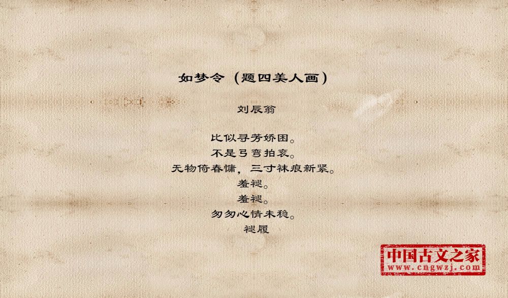 比似寻芳娇困。不是弓弯拍衮。无物倚春慵,三寸袜痕新紧。羞褪。羞褪。匆匆心情未稳。褪履