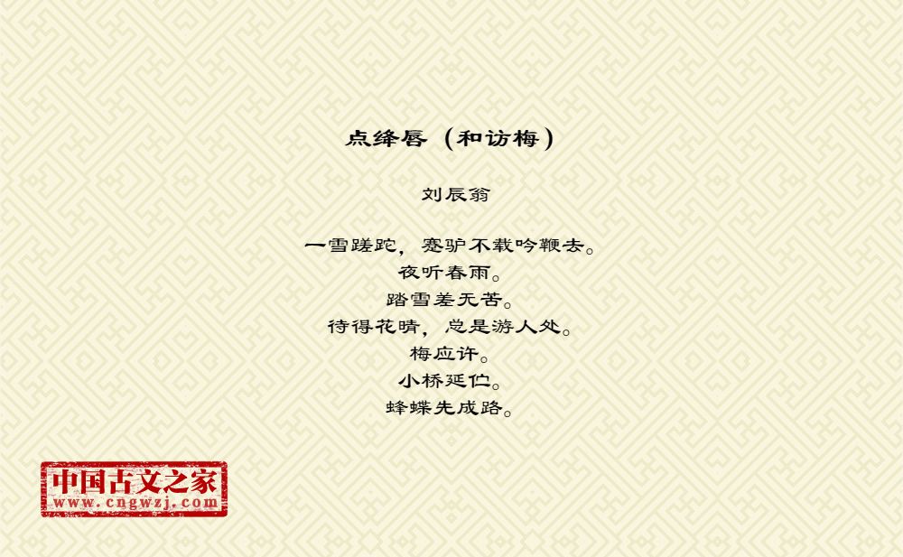 一雪蹉跎,蹇驴不载吟鞭去。夜听春雨。踏雪差无苦。待得花晴,总是游人处。梅应许。小桥延伫。蜂蝶先成路。