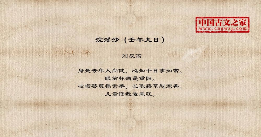 身是去年人尚健,心知十日事如常。眼前杯酒是重阳。破帽簪萸携素手,长歌藉草慰寒香。儿童怪我老来狂。
