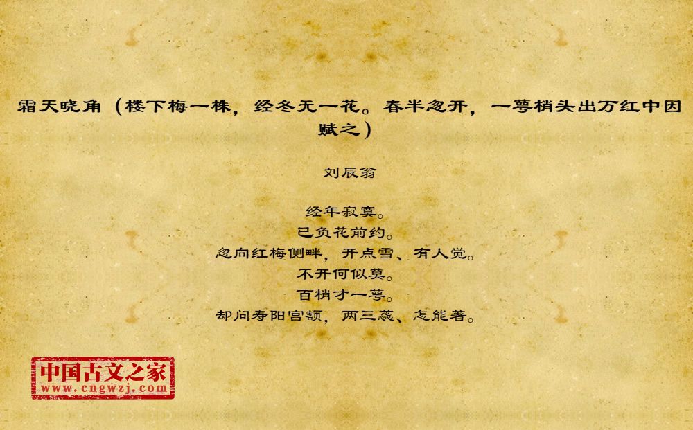 《霜天晓角(楼下梅一株,经冬无一花。春半忽开,一萼梢头出万红中因赋之)》的原文打印版(刘辰翁)