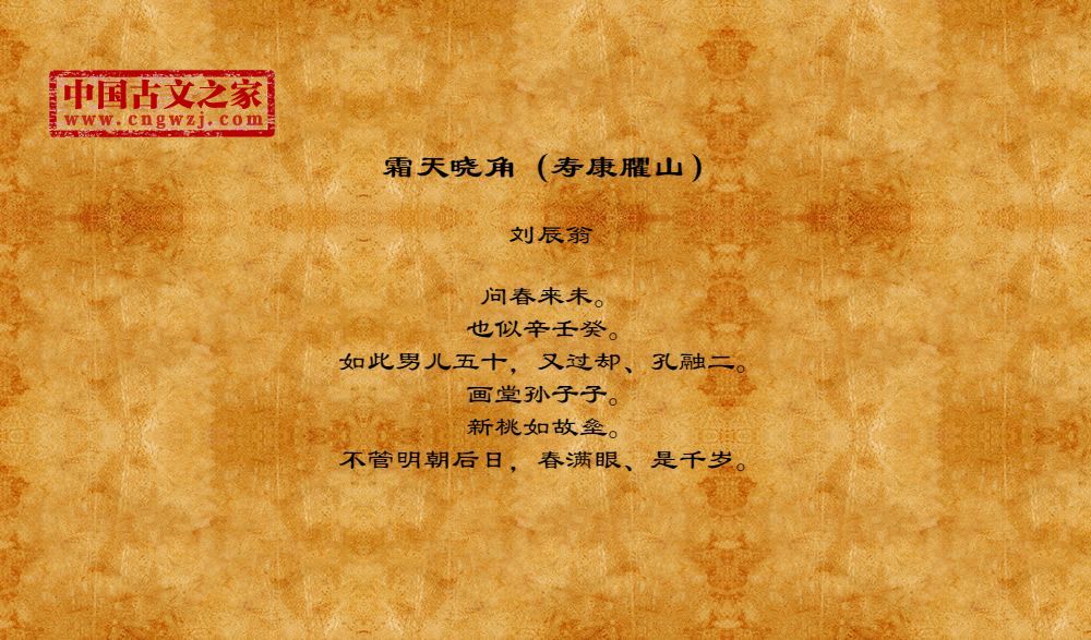 问春来未。也似辛壬癸。如此男儿五十,又过却、孔融二。画堂孙子子。新桃如故垒。不管明朝后日,春满眼、是千岁。