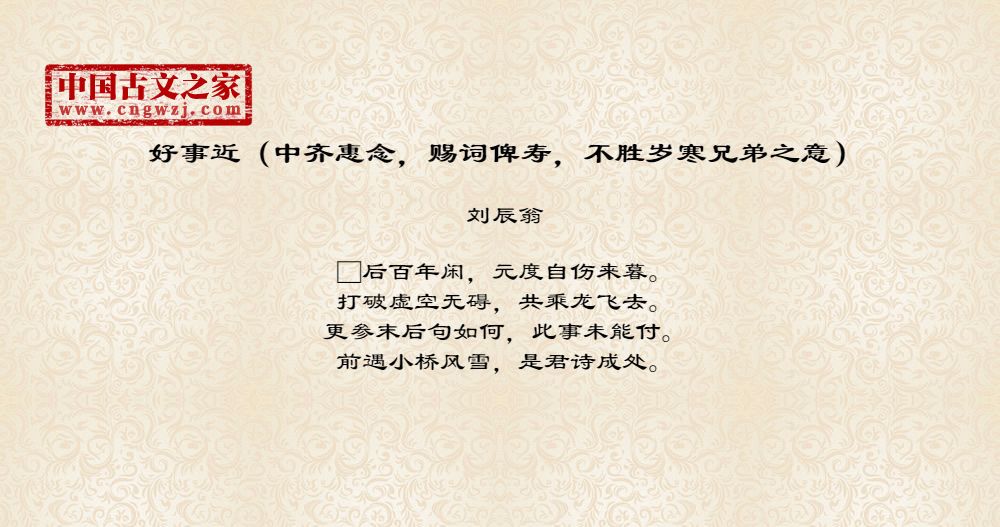 《好事近(中齐惠念,赐词俾寿,不胜岁寒兄弟之意)》由刘辰翁创作