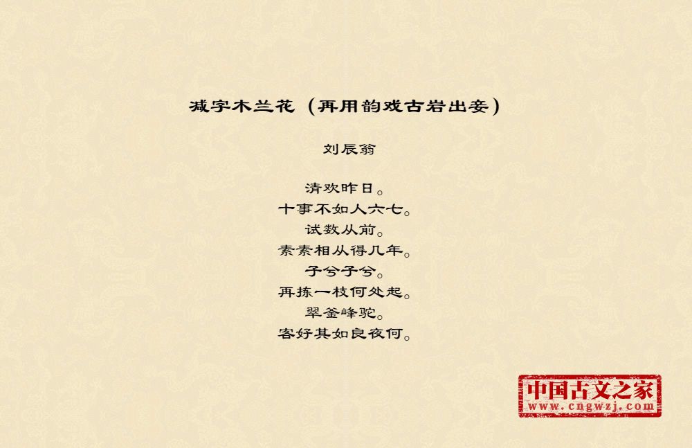 《减字木兰花(再用韵戏古岩出妾)》由刘辰翁创作