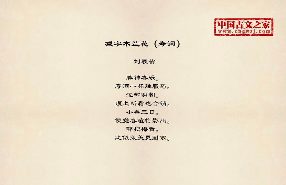 脾神喜乐。寿酒一杯胜服药。过却明朝。顶上新霜也合销。小春三日。便觉春暄梅影出。醉把梅看。比似茱萸更耐寒。