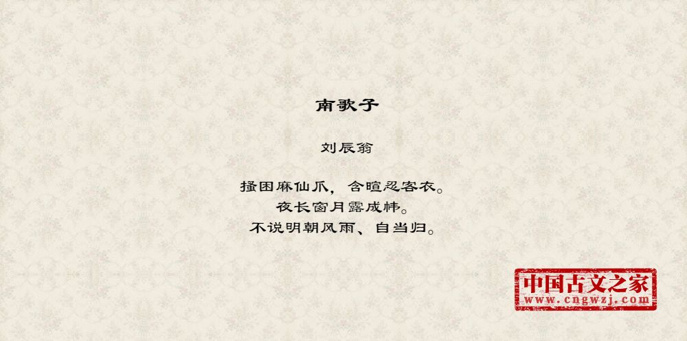 搔困麻仙爪,含暄忍客衣。夜长窗月露成帏。不说明朝风雨、自当归。