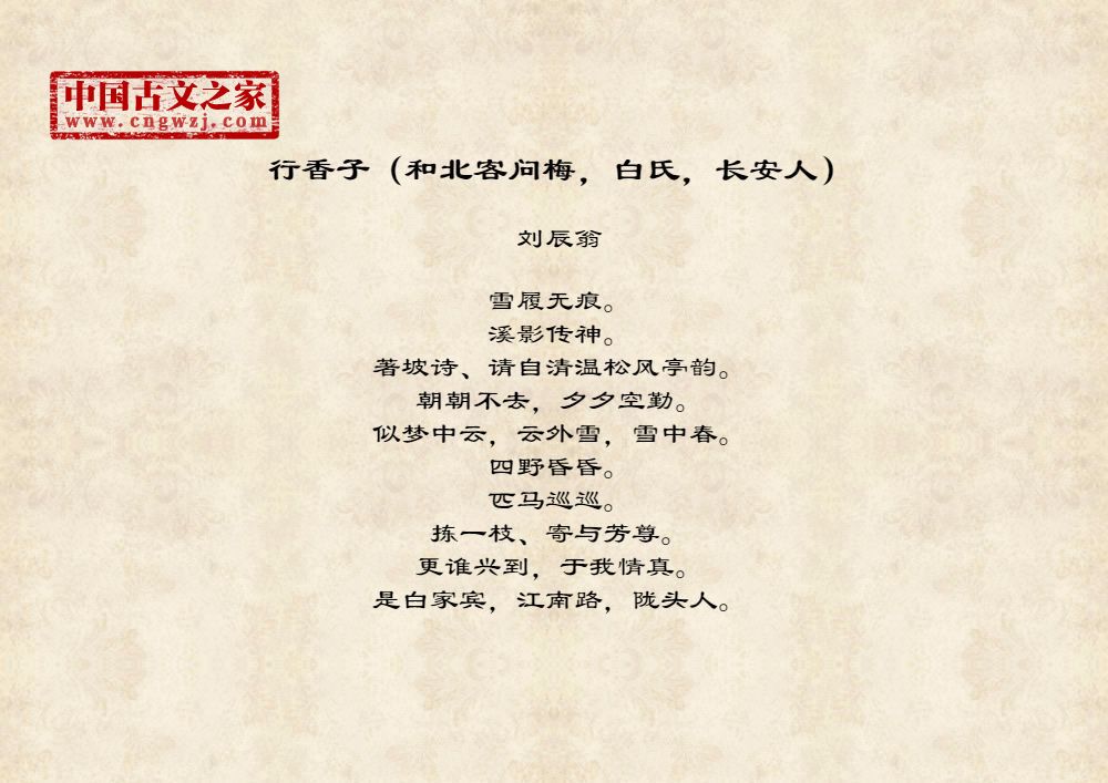 《行香子(和北客问梅,白氏,长安人)》的原文打印版(刘辰翁)