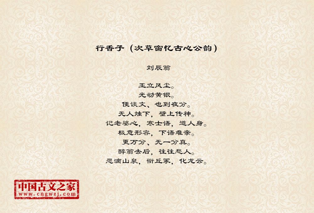 《行香子(次草窗忆古心公韵)》的原文打印版(刘辰翁)