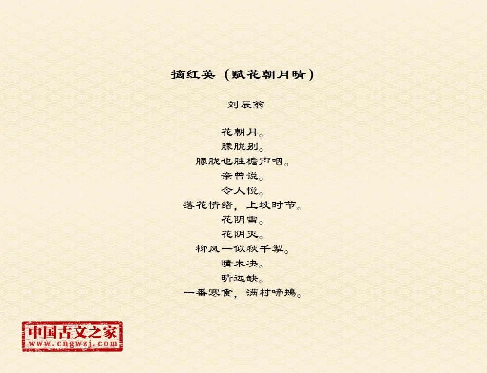花朝月。朦胧别。朦胧也胜檐声咽。亲曾说。令人悦。落花情绪,上坟时节。花阴雪。花阴灭。柳风一似秋千掣。晴未决。晴远缺。一番寒食,满村啼鴂。