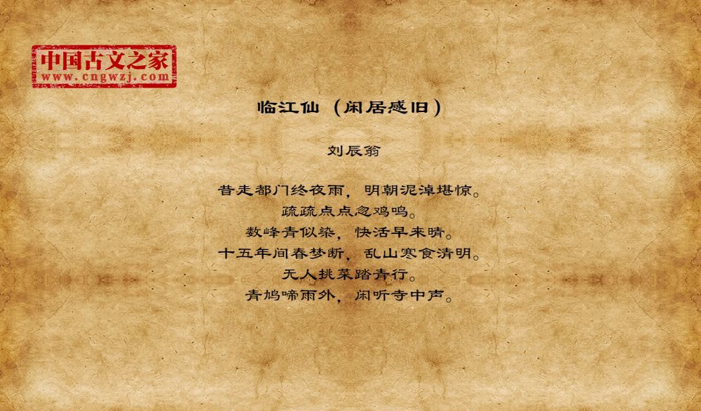 昔走都门终夜雨,明朝泥淖堪惊。疏疏点点忽鸡鸣。数峰青似染,快活早来晴。十五年间春梦断,乱山寒食清明。无人挑菜踏青行。青鸠啼雨外,闲听寺中声。