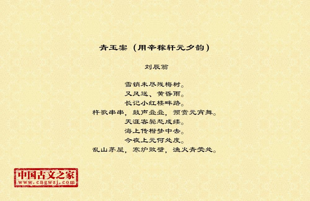 《青玉案(用辛稼轩元夕韵)》的原文打印版(刘辰翁)